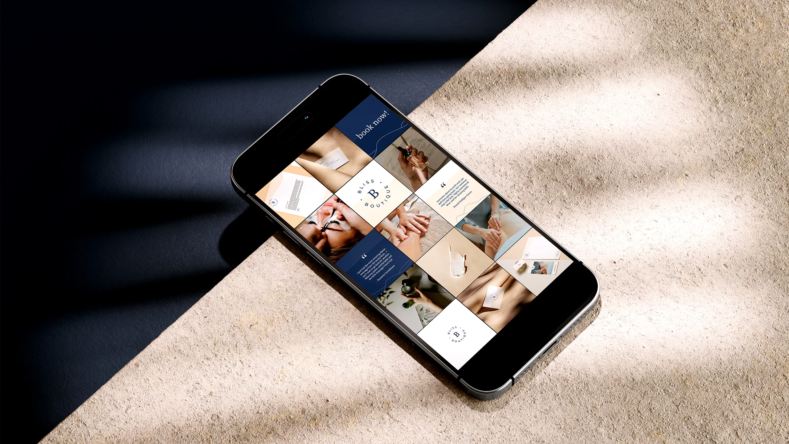The goal was to craft a brand identity that aligned with Bliss Boutique’s warm, holistic, and client-focused approach, moving away from its previous black, white, and gold aesthetic in favour of soft, neutral tones that embodied relaxation and care.
